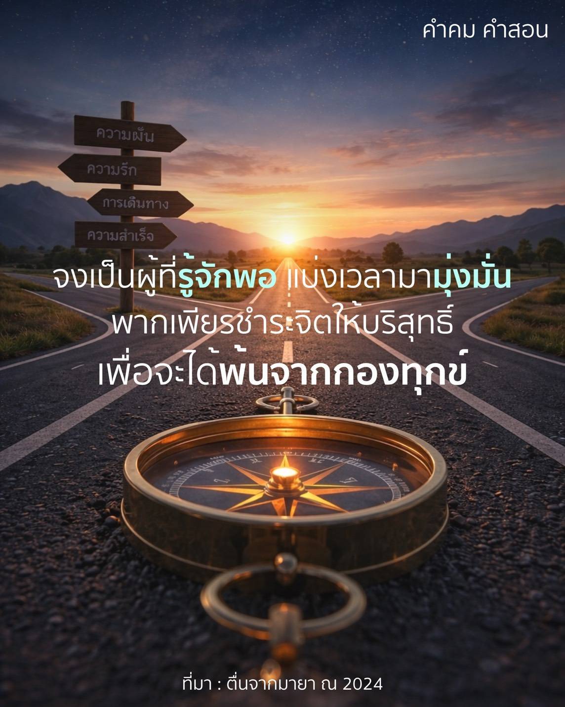 จงเป็นผู้ที่รู้จักพอ แบ่งเวลามามุ่งมั่นพากเพียรชำระจิตให้บริสุทธิ์เพื่อจะได้พ้นจากกองทุกข์