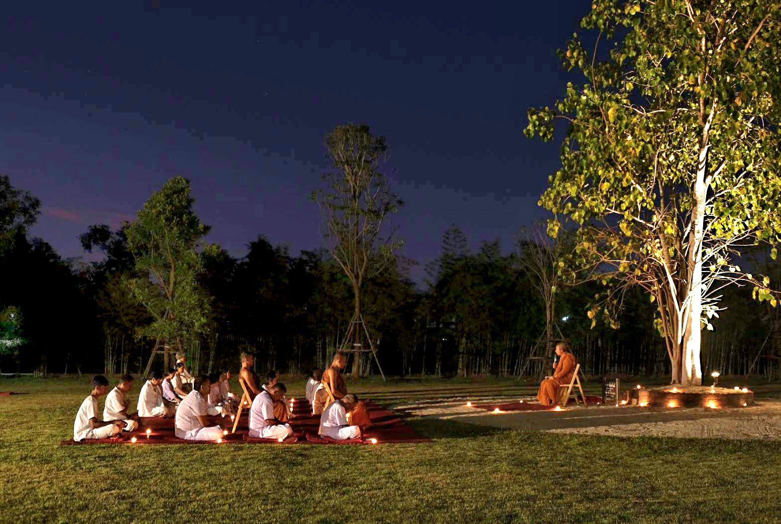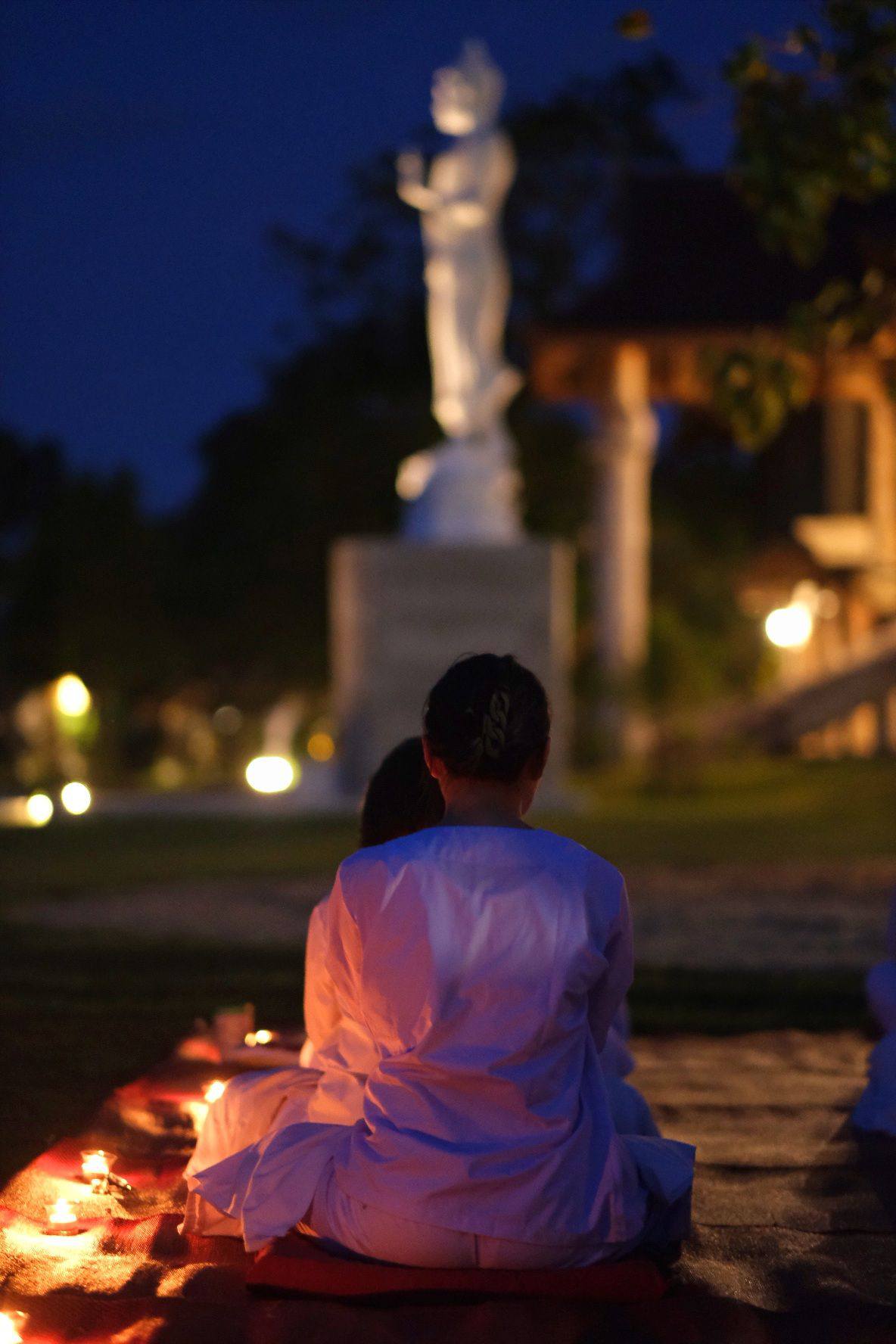 ปฏิบัติภาวนา แผ่เมตตาและตั้งจิตอธิษฐานที่ใต้ต้นโพธิ์กับแสงเทียน