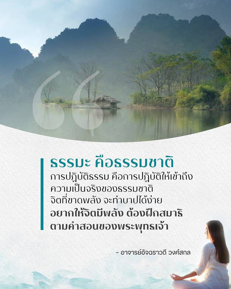 “อาตาปี สัมปชาโน สติมา พึงมีความเพียรเผากิเลสให้เร่าร้อน มีสติสัมปชัญญะรู้ตัวชัด และวางอุเบกขา ด้วยหลักการภาวนาที่มีอานุภาพในการเผากิเลสสูง และตรงตัว จึงทำให้ผู้ปฏิบัติพบความเปลี่ยนแปลงในตนเองอย่างรวดเร็ว ทำให้ชีวิตเปลี่ยนไปสู่ความดีงามได้ภายใน 7 วัน”